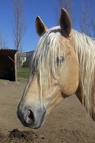 Date de naissance: 2001 Sexe: Hongre Taille:1m54 Race: Origine inconnu Au travail depuis: 2005 Caractéristique: Attrape tout avec sa bouche, très joueur!